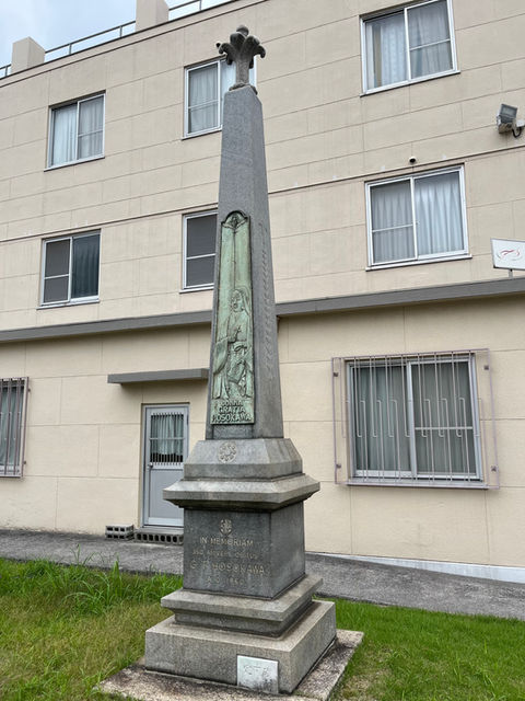 In 1894, St. Agnes Church was built on this site and Tamatsukuri Church was founded, with Father Marie as the first pastor. That church was burnt down in the war. Following this, the church was rebuilt as St. Francis Xavier Church and in 1963 it was rebuilt as the Cathedral of St. Mary. To the north-west of the cathedral is the “Ecchu-well'', which is said to be the site of the former mansion of Hosokawa Ecchumori. There is a memorial stone monument commemorating Mrs. Hosokawa Gracia's death. The current St. Mary's Cathedral is a large cathedral built of steel-framed reinforced concrete, with a floor area of 2,450 square meters, reaching up to eaves at the height of 20 meters, topped by a bronze plated roof. The large mural at the front of the church, behind the altar, and the murals on the left and right sides were painted by the late artist Insho Domoto, a member of the Japanese Art Academy. Approximately 100 windows of various sizes, including ventilation windows, are stained glass windows created by Kohshu Habuchi of the Venice studios. The stained glass windows depict the birth and baptism of Jesus Christ, the life of the Virgin Mary, and, in the small cathedral, St. Francis Xavier delivering the message of the gospel to the Japanese people. The large cross hanging in the center of the cathedral, the statues of Our Lady and St. John in the 2nd floor nave, the 14 scenes of the Stations of the Cross lining the walls of the cathedral, and the statues of St. Agnes and St. Francis Xavier in the small chapel are wood carvings by the Austrian sculptor Lungartje. The stone statues of Blessed Justo Takayama Ukon and Mrs. Hosokawa Gracia, located at either end of the plaza in front of the cathedral, are the masterpieces of the Catholic sculptor Masayoshi Abe. The cathedral's pipe organ has 2,400 pipes.